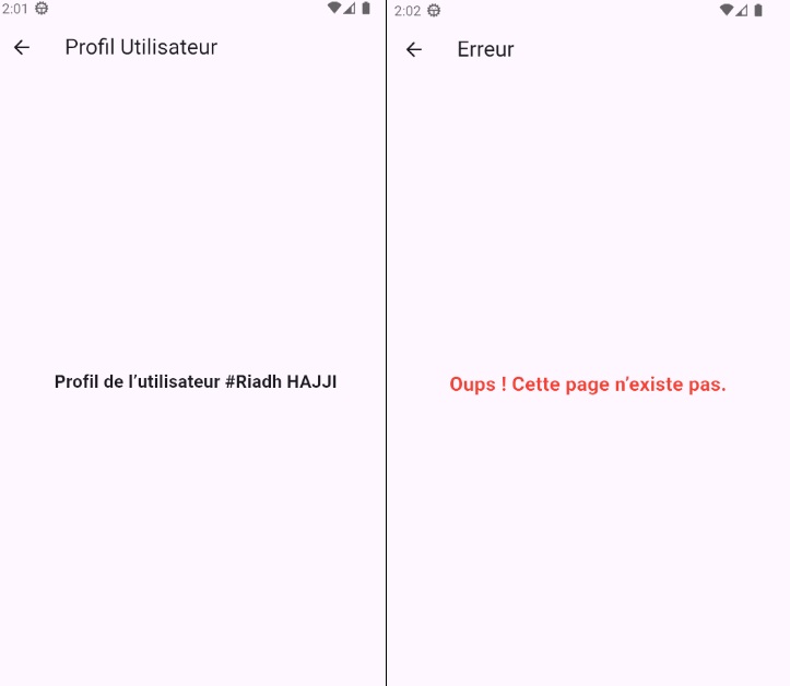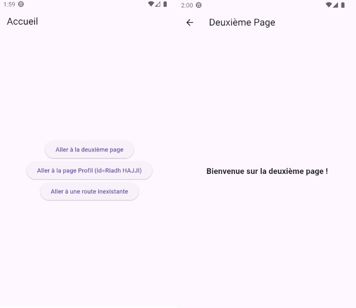 Cette application permettra de naviguer entre plusieurs pages (Accueil, Deuxième page, Profil utilisateur),