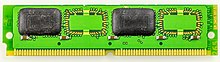 de l’anglais Double Data Rate Synchronous Dynamic RAM. Utilisée comme mémoire principale et comme mémoire vidéo, elle est synchrone avec l’horloge système mais elle double également la largeur de bande passante en transférant des données deux fois par cycles au lieu d’une seule pour la SDRAM. On distingue les DDR PC1600, PC2100, PC2700, PC3200, etc. Le numéro représente la quantité théorique maximale de transfert d’information en Mégaoctets par seconde. Elle s’est généralisée dans les ordinateurs grand public avec les générations Pentium III et Pentium 4. Elle comporte 184 broches. Cette mémoire est en voie de disparition avec le retrait des ordinateurs[Lesquels ?] du début des années 2000[réf. nécessaire].